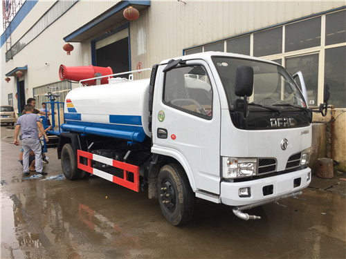 東風(fēng)福瑞卡灑水車前裝有鴨形噴嘴或圓頭沖嘴,灑水車后面裝有圓柱開灑水噴嘴或蓮蓬頭噴嘴,后部有一工作平臺,裝配有水炮。后部還可裝8個噴嘴(選裝)噴水器一般用于沖洗街道,起除塵和降溫作用,其噴水器可以用調(diào)節(jié)噴嘴螺紋的方法改變噴水器的噴灑方向和角度,高射水炮可以用于城鄉(xiāng)園林綠化及應(yīng)急消防。蓮蓬嘴可以澆落路中間噴水器沖起的灰塵,起到清潔空氣的作用。