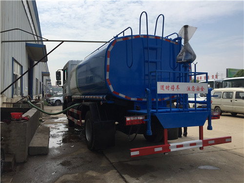 灑水車上裝配置:罐體有效容積約為15立方灑水車,隨州億豐泵,罐體鋼板為4MM碳鋼,罐體及整車外形尺寸按照公告。整車前沖、后灑、側(cè)噴、帶65消防接口,后平臺帶泡不帶門,前封頭帶水位計,后平臺主管路帶1寸澆花接口,后爬梯。平臺后部帶小安全告知牌:“隨時停車,注意安全”,帶兩根水管及陰陽端。罐體顏色:上白色下東風(fēng)蘭,罐體兩側(cè)噴“灑水車”,貼反光標(biāo)示。