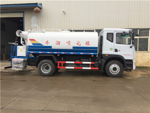 東風多利卡D9抑塵車駕駛室和底盤都介紹完了,在來說說東風多利卡D9抑塵車罐體和灑水車功能,也是抑塵車不可缺少的部分,東風多利卡D9抑塵車整車尺寸7500×2500×3300(mm)罐體尺寸4100×2350×1550mm裝水容積是12方,整車型號為HLW5163GPS5EQ,底盤型號為EQ1165LJ9BDE,罐體顏色是藍/白色,中間印有抑塵車三個字樣,抑塵車功能有前沖,后灑,后工作平臺帶高炮,右位花灑,側噴,還加裝噴霧尾部霧灑,霧炮等。前沖工作距離是8米,后灑距離也是8米,后工作平臺柱狀射程是28米,霧狀距離是5米,右位花灑距離是8米,側噴也是8米。想加裝霧炮機組射程是35米。