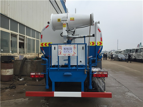 前沖主要是對路面進行沖洗,主要用于環衛路面清洗,后灑主要用于降塵,右位花灑也用于降塵也可以用于澆灌樹木。后工作平臺高炮就厲害了,這個抑塵車后工作平臺高炮能用于消防滅火,也能用于澆灌距離遠又高的樹木,近的地方可用霧狀進行澆灌,就是多功能灑水炮。