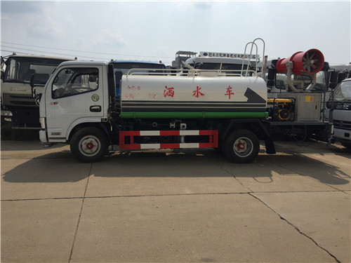 國五東風多利卡灑水車,罐體容積5立方米,該車具有免征公告(可免交車輛購置稅)。采用武鋼4mm優質碳鋼板一次卷壓成型,完全做到無縫成型。罐體內設多道防波隔板,采用高壓氣體試漏檢測,使罐體具有強度高,重心穩,車輛運載安全平穩。罐體外表為烤漆,罐體及各保險杠貼紅白色視覺反光條,罐體兩側噴“綠化灑水車”字樣(可按您的要求噴繪字樣),罐體顏色出廠為上白下綠或上白下藍(可按您的要求噴繪顏色)。