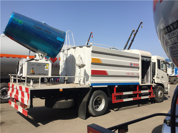 抑塵車又稱為:霧炮車、噴藥車。霧炮車噴射的水霧顆粒達到微米級,能有效分解空氣中的污染顆粒物、塵埃等,在霧霾天氣下用于降塵除霧,可以有效的緩解霧霾,其節水的特性同樣也可以用作灑水車使用。霧炮車還可以降塵、灑水,把樹上的灰塵洗掉。霧炮車噴灑出的水霧與懸浮在空氣中的PM2.5和PM10粉塵顆粒吸附、聚合、沉降,達到消除污染物和減霾的目的。盡管霧炮口徑巨大,但其噴灑耗水量僅為傳統灑水車的兩到三成,覆蓋面積和除塵效率卻高出20倍。既提高效率,也避免路面積水影響交通。